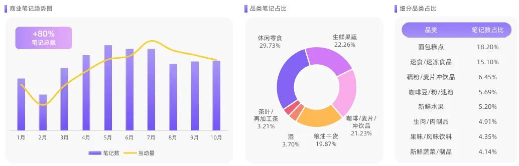 食品饮料月均互动量突破3亿,用户既追求“草本养生”,将超级食物融入日常,也热衷“邪修美食”,在猎奇与快捷中获得新鲜体验。烘焙、饮品类UGC内容尤其活跃,显示“吃得健康”与“吃得有趣”同样重要。品牌在产品创新之外,也可通过内容营造“健康也能很好玩”的饮食叙事。