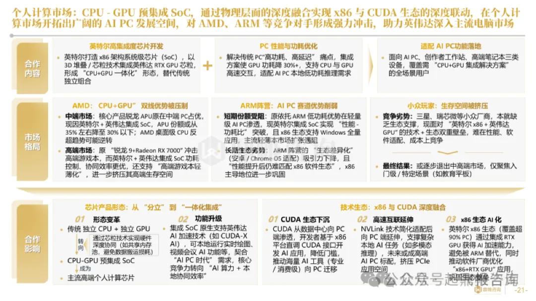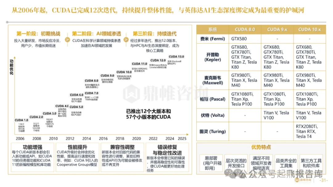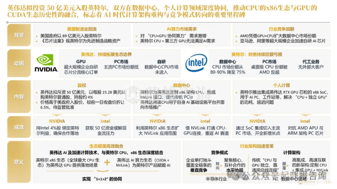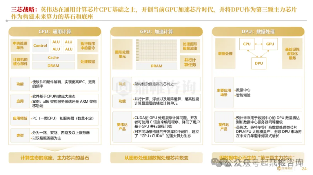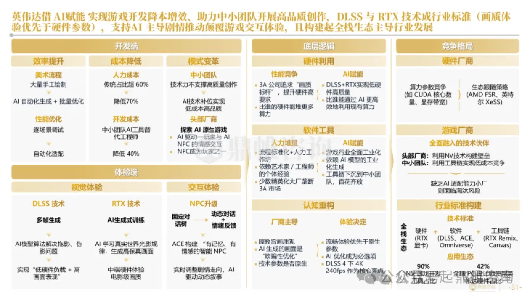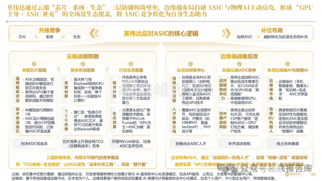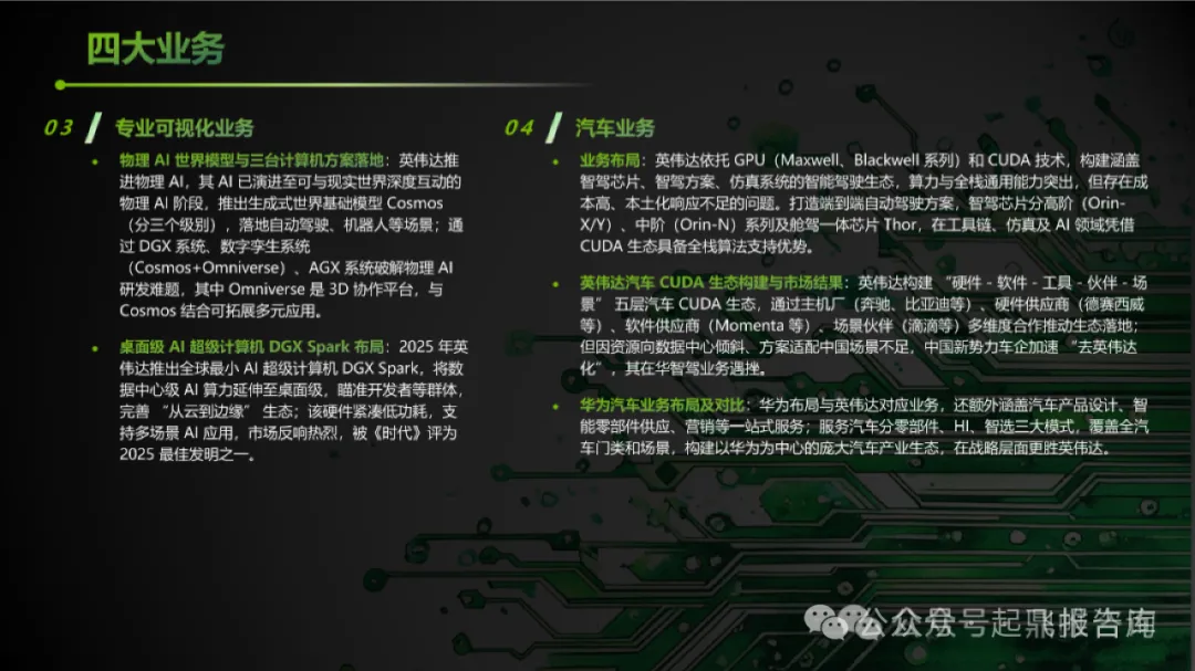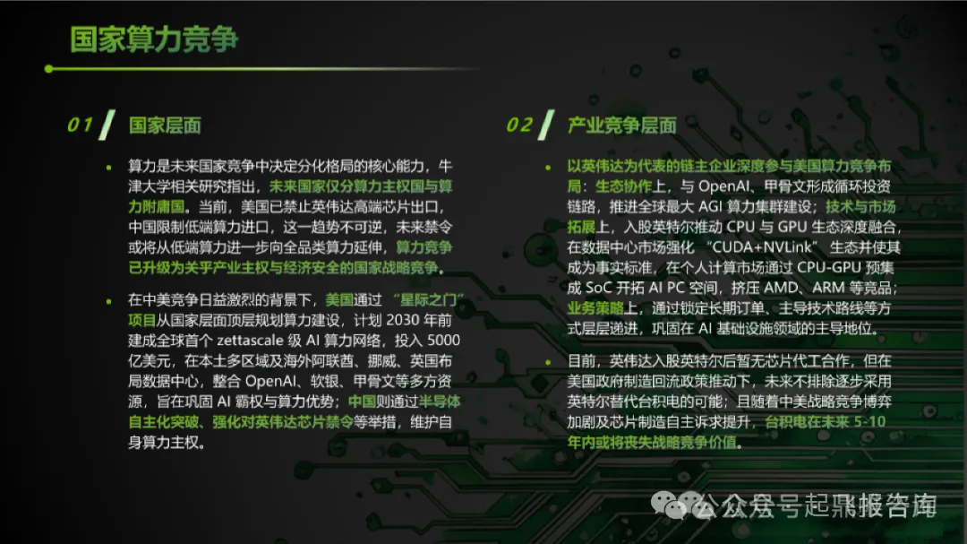 《人工智能发展战略研究报告(2025版)》由鼎唯战略创新研究院发布,聚焦英伟达在人工智能领域的战略布局与全球竞争态势。报告指出,英伟达已超越传统芯片企业身份,成为美国维系技术霸权的关键支点,其“三芯战略”(CPU、GPU、DPU)与“四大业务”(游戏、专业可视化、数据中心、汽车)构建了全栈AI基础设施体系。通过“星际之门”等国家级算力项目,美国正推动zettascale级AI算力网络建设,强化算力主权与生态控制。英伟达与OpenAI、甲骨文等形成ONO联盟,入股英特尔实现CPU-GPU深度融合,进一步巩固其在AI训练与推理市场的主导地位。报告同时剖析了中国在算力自主、芯片禁令、华为链主作用等方面的应对策略,强调中国AI产业在ASIC、边缘计算等领域的追赶态势与生态整合挑战。研究还覆盖英伟达在医疗、机器人、量子计算等第二曲线的布局,呈现其在物理AI、生成式世界模型等领域的前沿探索。