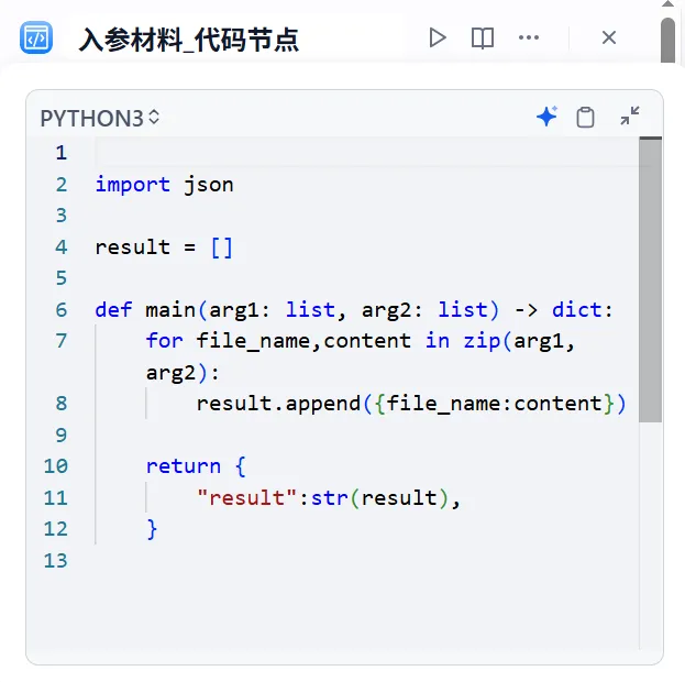“入参材料_代码节点”展示图