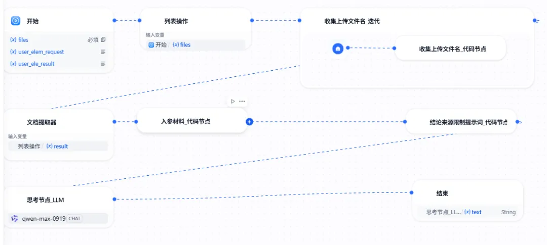 输出节点:生成结构化结果(要点、结论指向、来源)。