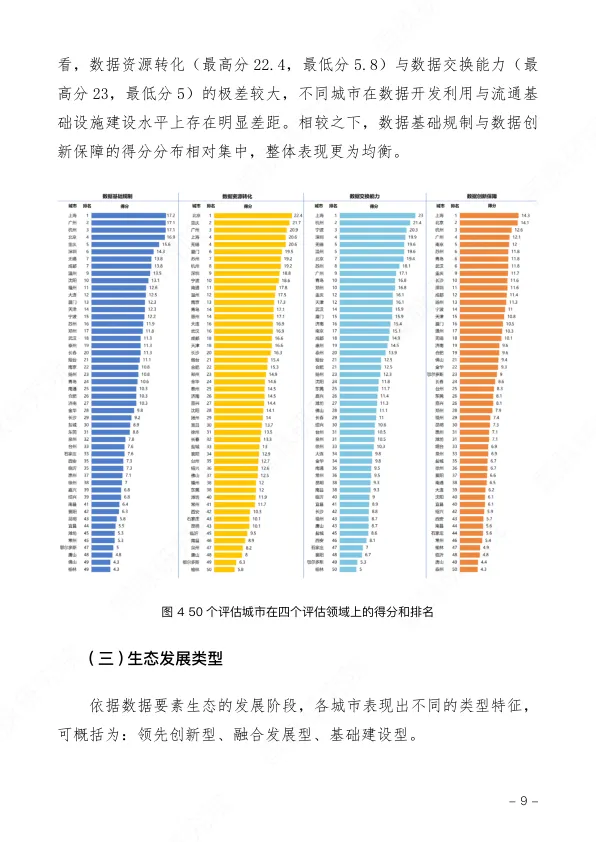 - 第三梯队(基础建设型): 其余40个城市,包括成都、青岛、武汉等。它们普遍在搭建数据基础设施、制定规则和培养人才,但数据的实际应用和流通能力还比较弱,有巨大的追赶空间。