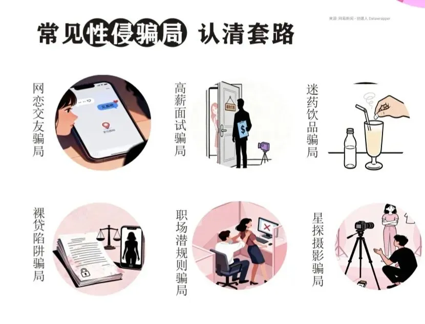 性侵犯罪常伴随各类伪装的骗局,比如以“网友见面”“职场面试”“求助带路”等名义诱导受害者单独相处。牢记:不轻易赴陌生邀约、不单独与非信任对象进入封闭空间,是规避此类风险的核心原则。