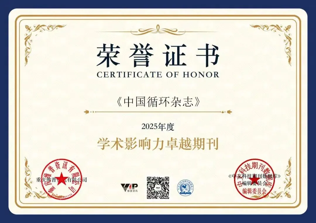 维普资讯发布的《中文科技期刊数据库》期刊年度影响力报告显示,2024年《中国循环杂志》影响因子6.427,在121种内科学期刊中排名第一。