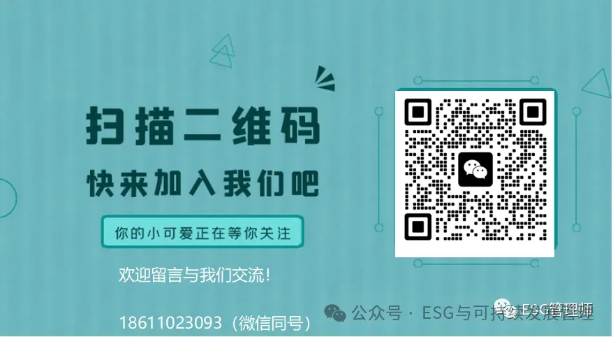 第一步:点文章开头左上角蓝字”ESG与可持续发展管理”关注公众号转发这篇文章到朋友圈(小号、分组、删除或PS直接拉黑哦,朋友圈要设为可见)保留2小时获并得2个赞或转发2个100人以上金融、法律、投资、财务、咨询、班级/校友群相关微信群保留10分钟。