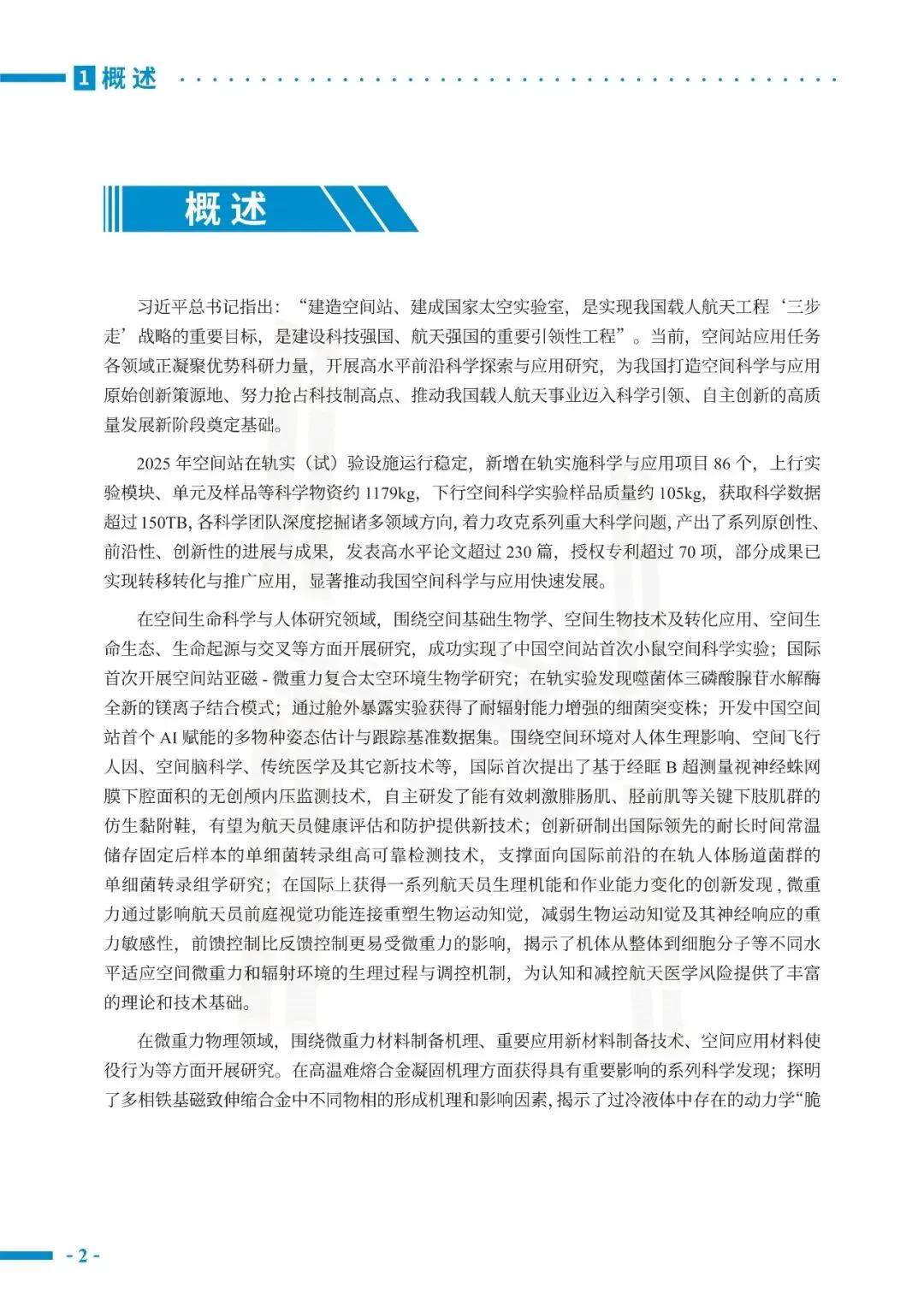 报告系统梳理了空间生命科学与人体研究、微重力物理科学、空间新技术与应用、科普文化四大领域的重要进展与成果。