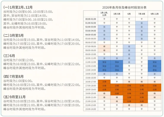 2026年执行的工商业分时电价延续了分月划分时段、峰谷深尖并重的特点,政策细节堪称全国最精细。