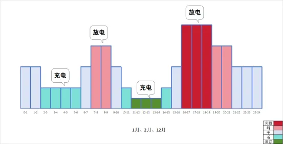 1-2月、12月(冬季):谷时段为2:00-6:00、10:00-15:00,其中,深谷时段为11:00-14:00,高峰时段为7:00-9:00、16:00-21:00,其中尖峰时段为16:00-19:00,其余时间为平时段;