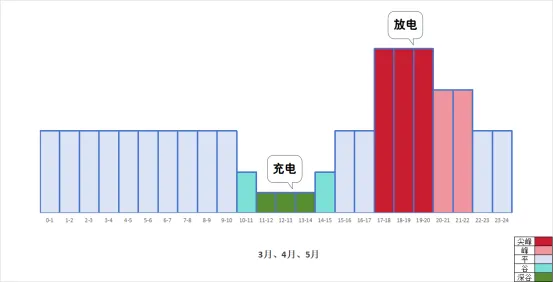3-5月:谷时段为10:00-15:00,其中,深谷时段为11:00-14:00,高峰时段为17:00-22:00,其中,尖峰时段为17:00-20:00,其余时间为平时段;
