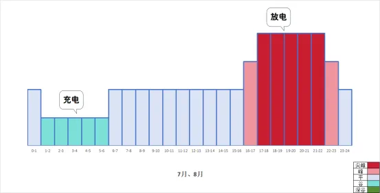 7-8月(夏季):谷时段为1:00-6:00,高峰时段均为16:00-23:00,其中,尖峰时段为17:00-22:00,其余时间为平时段;