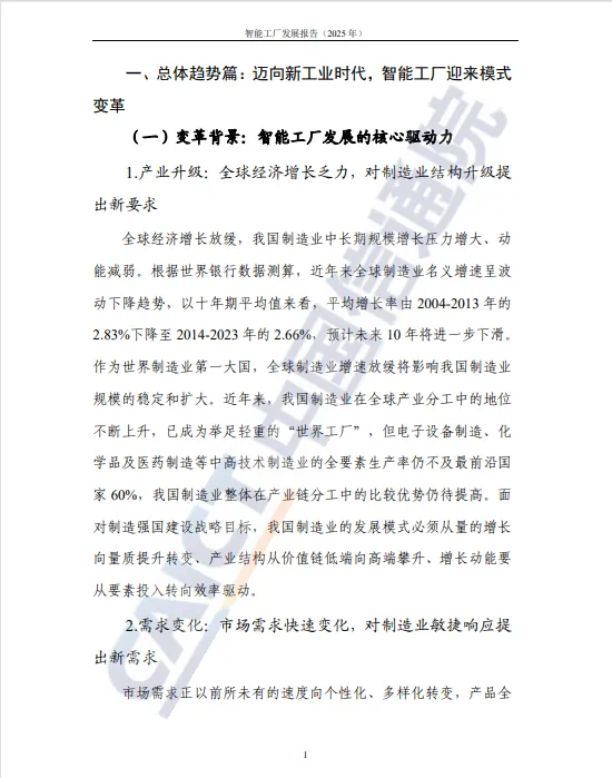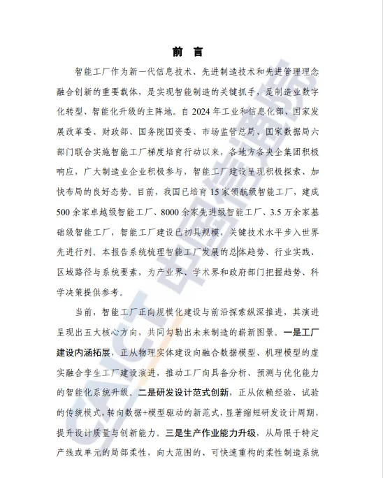 该报告系统梳理智能工厂发展的总体趋势、行业实践、区域路径与系统要素,为产业界、学术界和政府部门把握趋势、科学决策提供参考。