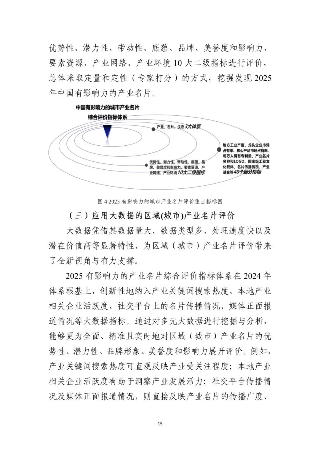报告聚焦城市产业、科技与文化融合发展,描绘了我国30个城市和50个县域的产业名片影响力图景,构建了“产业影响力、生态影响力、名片影响力”三大维度的综合评价体系,包含40个细分指标,并创新性纳入大数据指标,通过德尔菲法与蒙特卡罗模拟法确保评价科学性。评价结果显示,产业名片与经济强市、强县重合度较高,头部城市聚集效应明显,北京、上海、深圳等城市领跑,苏州、杭州等新一线城市在新兴领域表现突出。