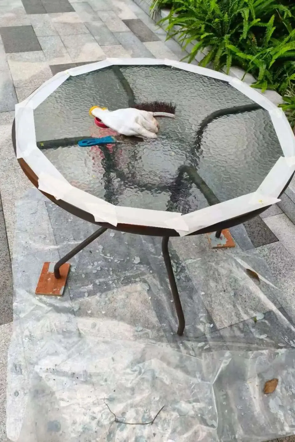 吸烟区桌子刷漆