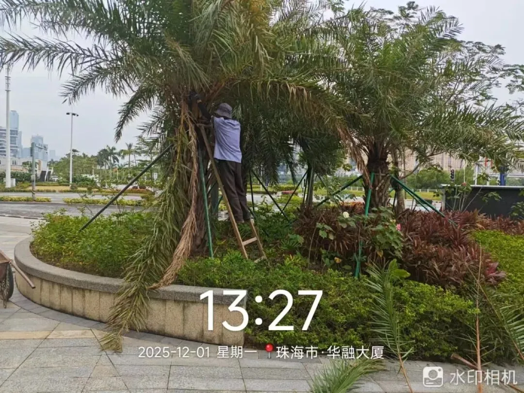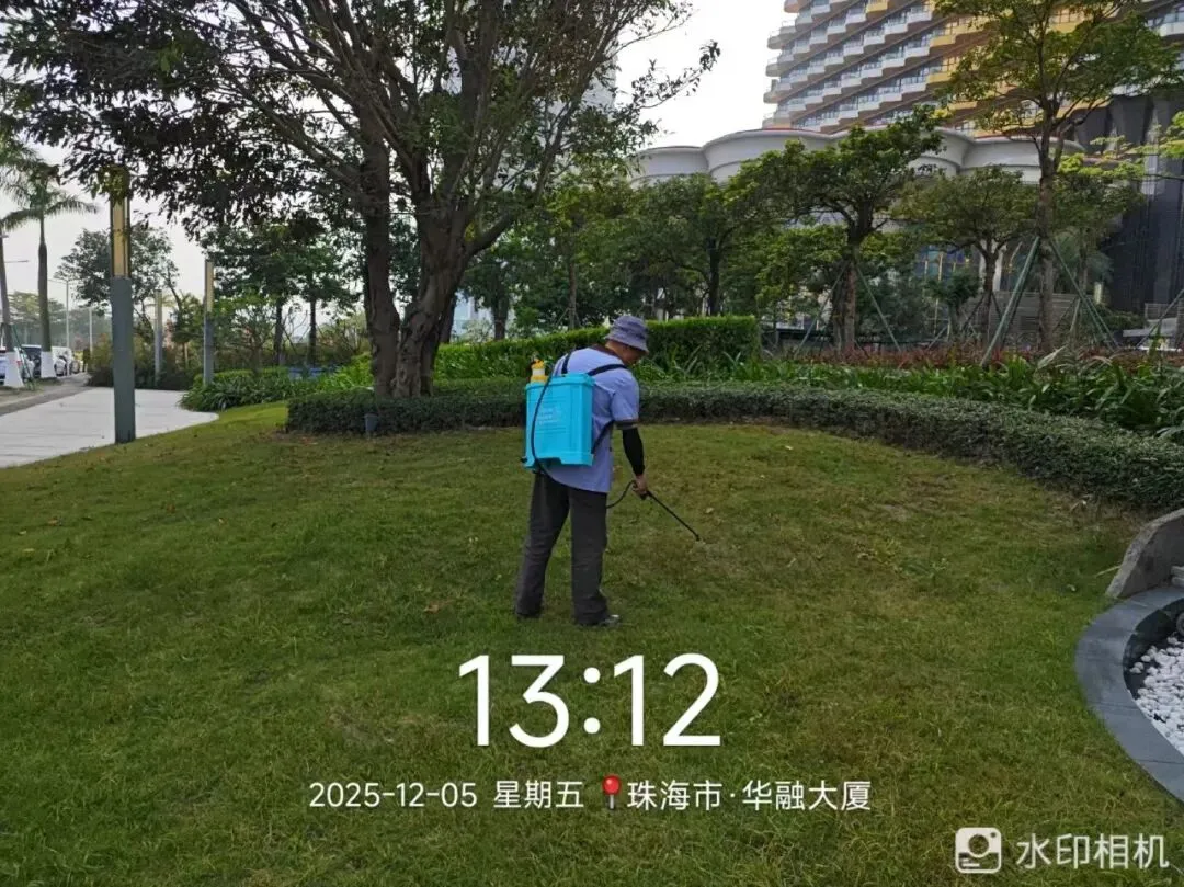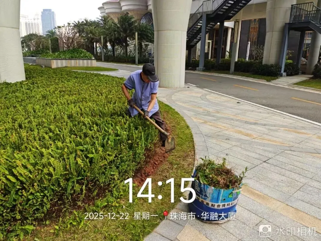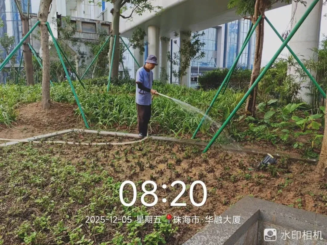 每日对大厦绿植浇水养护,定期对绿植进行修剪、喷洒除草剂,并补种草皮8平方米。