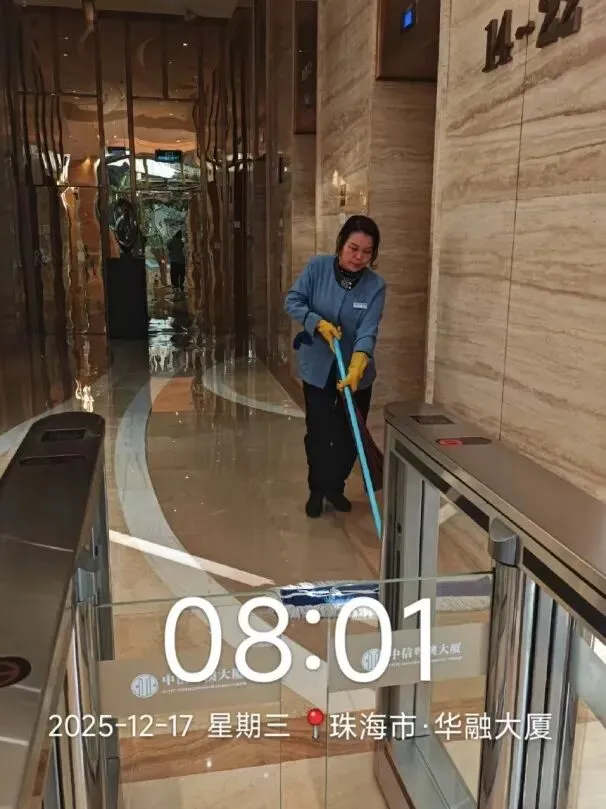 每日对大堂、楼层、洗手间、外围、地库等公共区域进行全覆盖清洁。