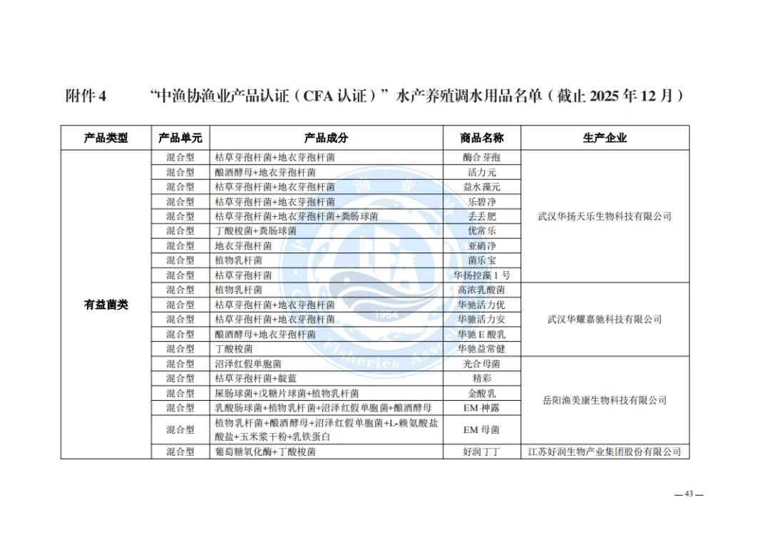 《水产养殖调水用品质量安全生产管理规范》 | 中国渔业协会(团体标准) | 2025.10.01 | 明确调水用品功能,规范生产管理、危机控制、追溯体系 |