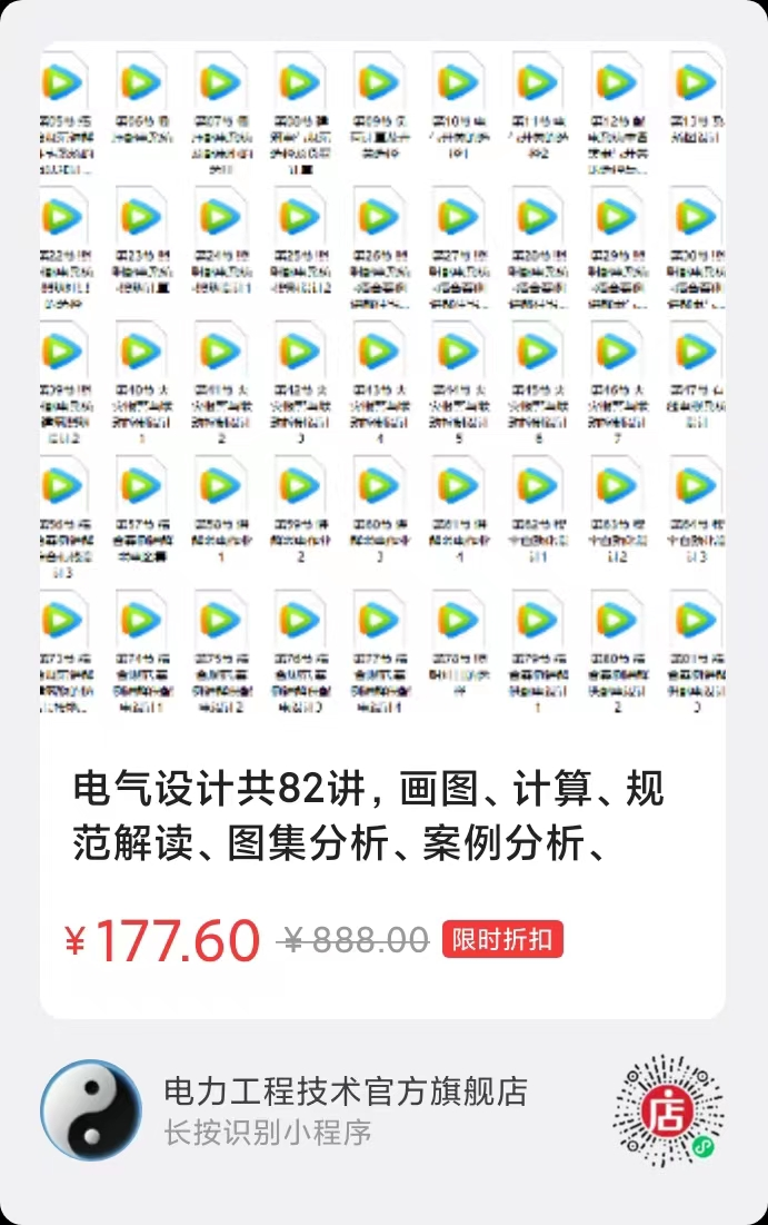电气设计共82讲,画图、计算、规范解读、图集分析、案例分析、通俗易懂,电气设计从入门到精通!,原价88元,秒杀价177.6元!