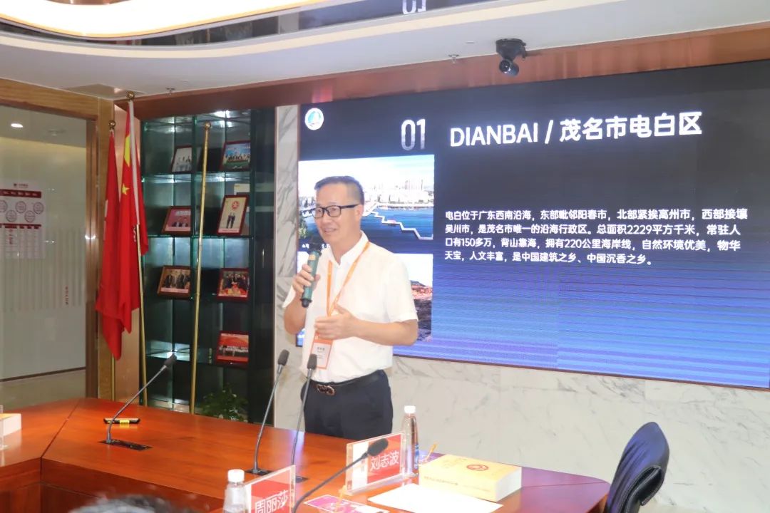 座谈会上,全体与会人员观看了茂名市电白区的宣传片。片中介绍了电白区背山靠海、气候宜人的地理环境,巾帼英雄第一人冼太夫人的故事等。让大家对电白的历史背景、民俗文化等方面有了更深入的了解。