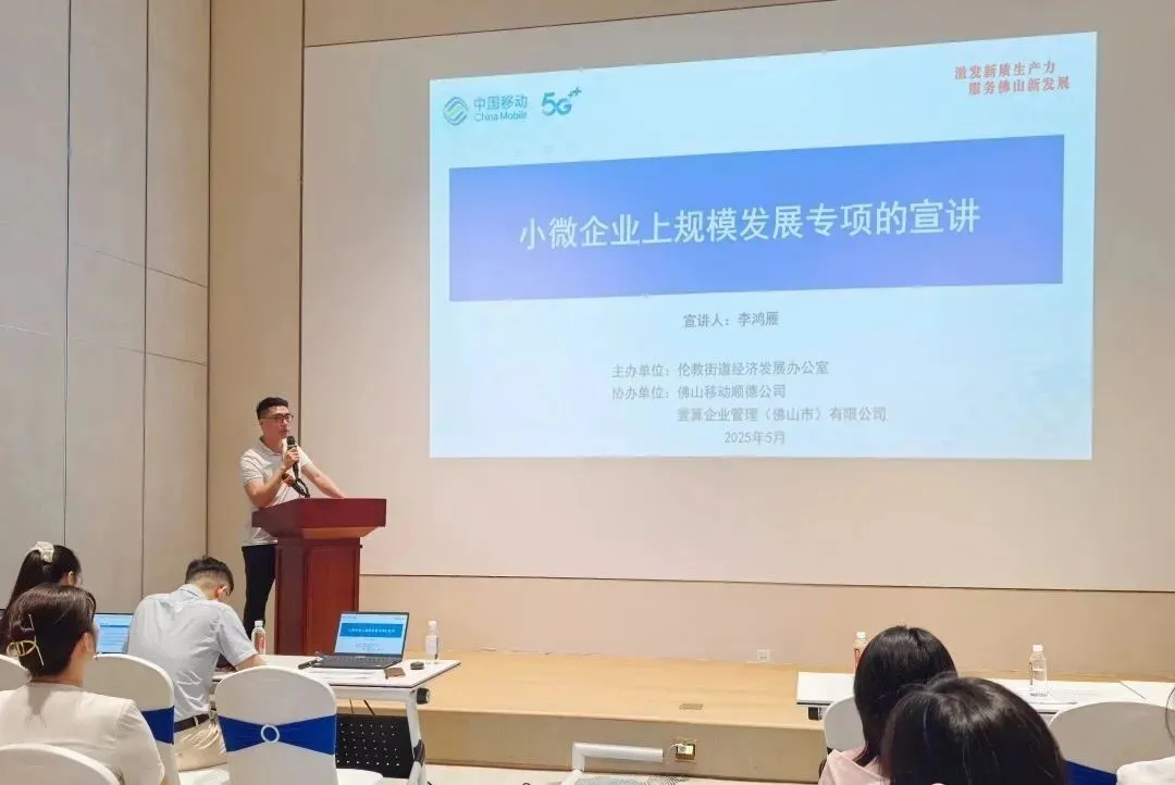 5月16日下午,由伦教街道经济发展办公室主办、佛山移动顺德分公司承办的《2025年伦教街道中小企业数字化转型专题培训会暨小升规、专精特新政策宣讲会》在金福盛美学馆成功举办,共30多家小微企业代表参加本次活动。