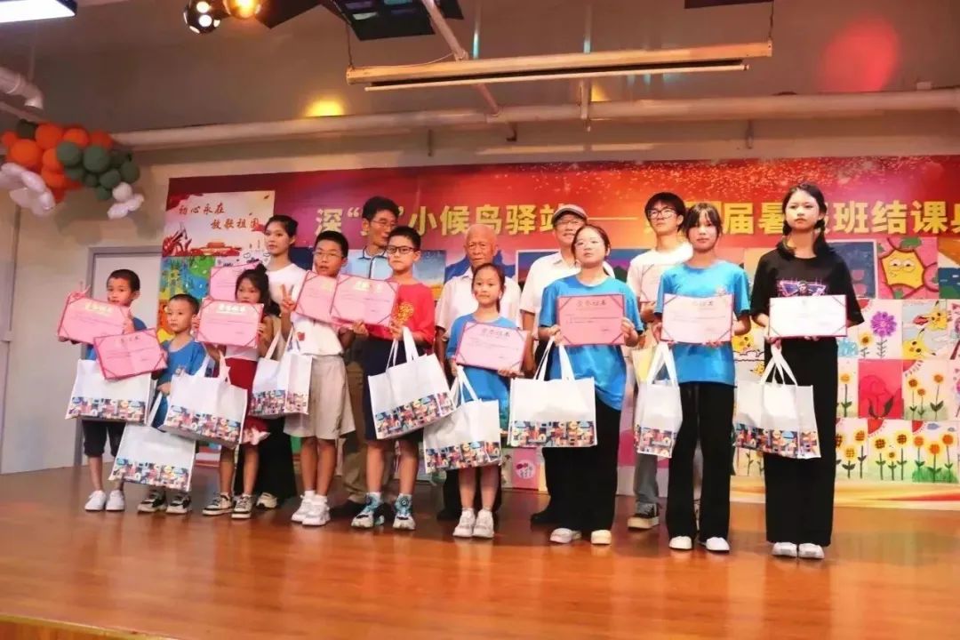 精彩的演出鼓动人心,优秀的学生和教师值得嘉奖,宝安区关工委主任温介平与艾美特电器(深圳)有限公司副董事长、企业关工委主任蔡正富为优秀学员和教师颁发了奖状和奖品,激励更多的学生和教师努力学习与进步。