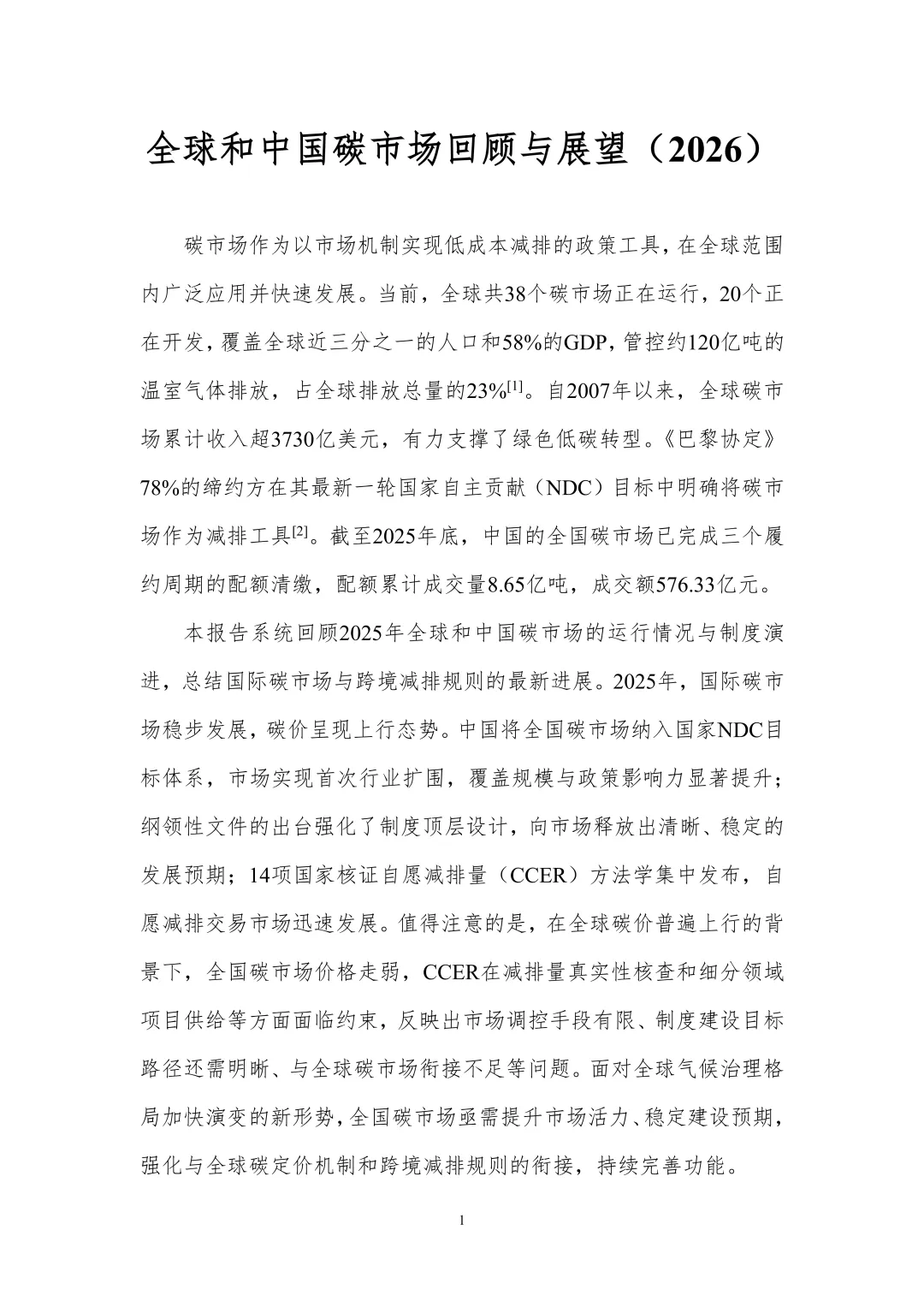报告分享丨全球和中国碳市场回顾与展望(2026)