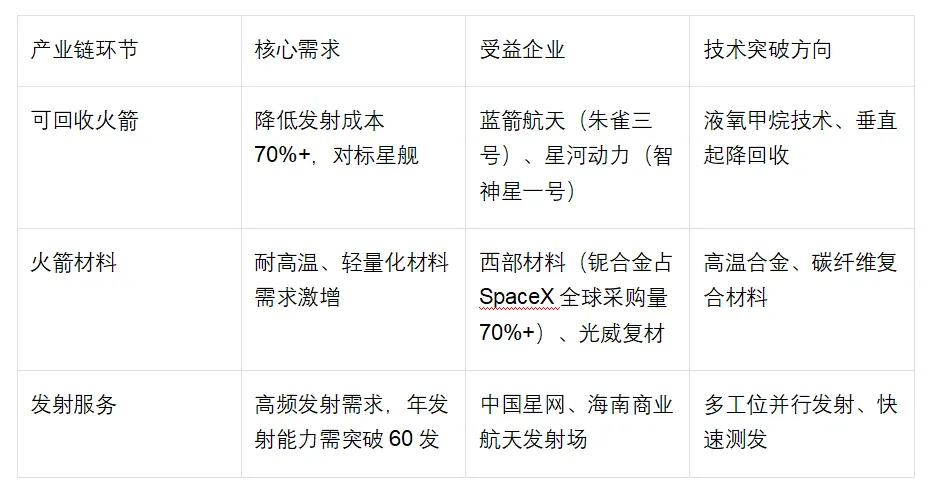 4.航天材料、可回收火箭、卫星制造等产业链环节迎来爆发式增长