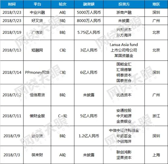7月网贷行业融资平台