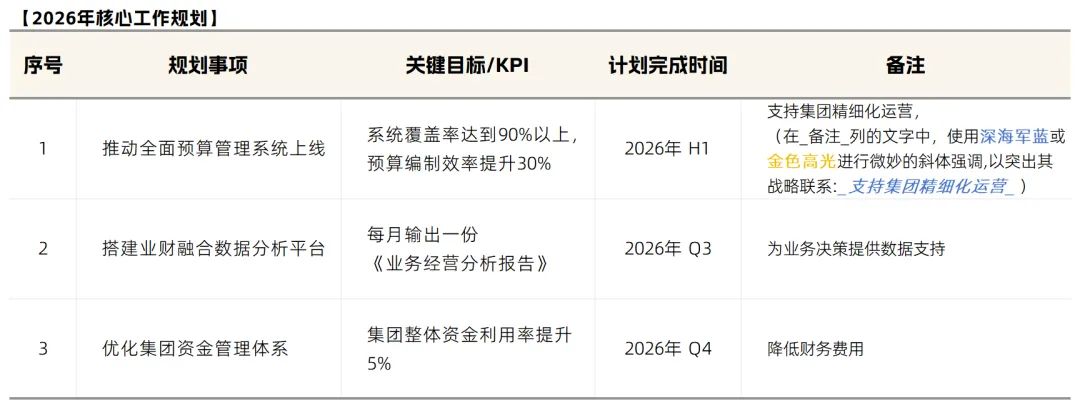 这是你述职的“主菜”。千万不要罗列工作清单,比如“我完成了12次月度结账、4次季度申报……” 这是职责,不是成果。成果是,你通过你的工作,为公司带来了什么【价值】。