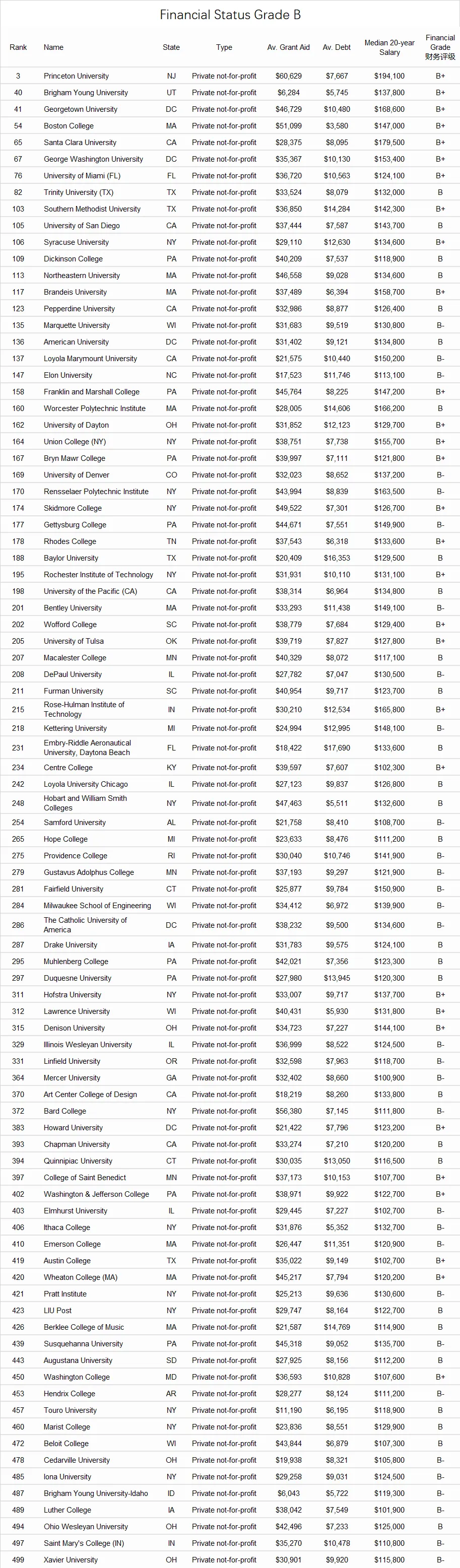 福布斯财务评级B级学校名单