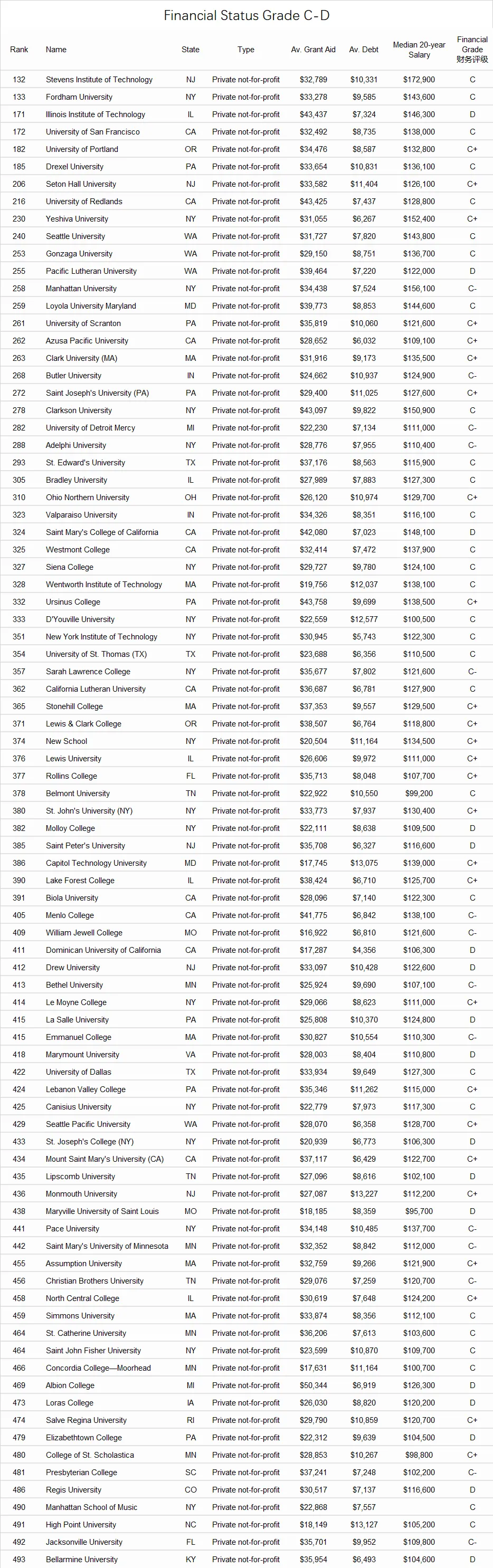 福布斯财务评级C级D级学校名单