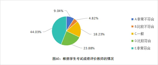 深入分析教师评价中的“唯分数论”现象发现,67.91%(“非常符合”+“比较符合”)的教师认为学校将学生考试成绩与教师绩效工资、岗位聘任等挂钩(见图60)。
