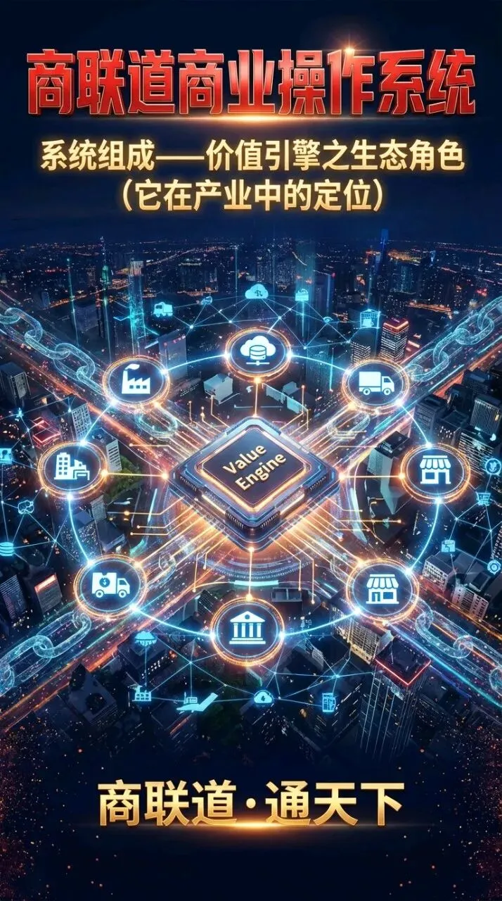 一句话总结,生态角色,就是在产业和消费生态中承担连接,协调,赋能,聚合,共生,进化的角色。它不是"中心点",也不是"末端参与者",而是让整个产业网络顺畅运转共同增值的协同者。商联道商业操作系统是共享生态的“操作系统”,既提供技术基础设施,又定义商业规则,更通过商道文化价值输出凝聚多元主体共融,最终实现“全球商企与消费者共生共荣”的愿景。