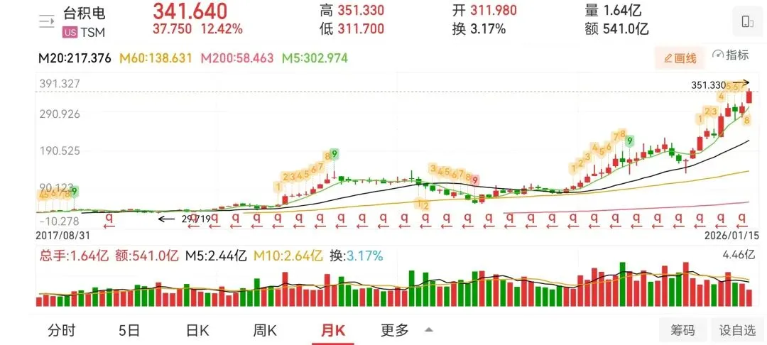 本周四、周五美股市场,半导体芯片股强势领涨。再次点燃全球科技投资热情的,是两则具有划时代意义的产业信号。台积电发布超预期财报:第四季度利润同比增长35%,创下历史新高,财报后股价大涨,再创新高。OpenAI正式进军实体硬件,启动5000亿美元“星际之门”基建计划。这不仅是业绩与战略的发布,更是一场从虚拟智能向物理世界全面渗透的产业革命宣言。台积电:AI需求兑现,盈利进入新纪元