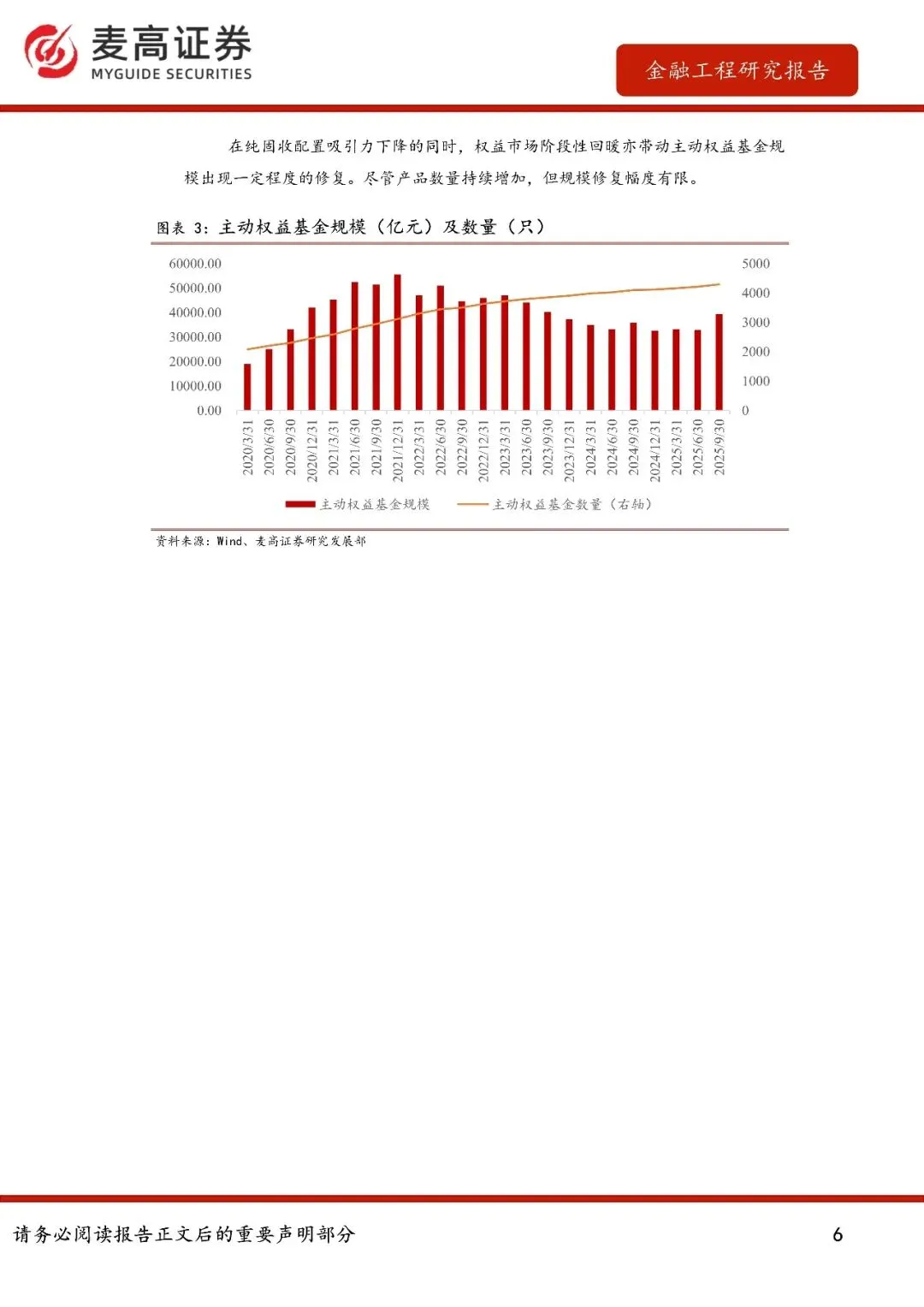 行业集中度:截至 2025 年第三季度,前二十家基金公司管理规模合计 1.42 万亿元,占全行业规模 71.43%;规模前三名分别为易方达、景顺长城、富国基金。