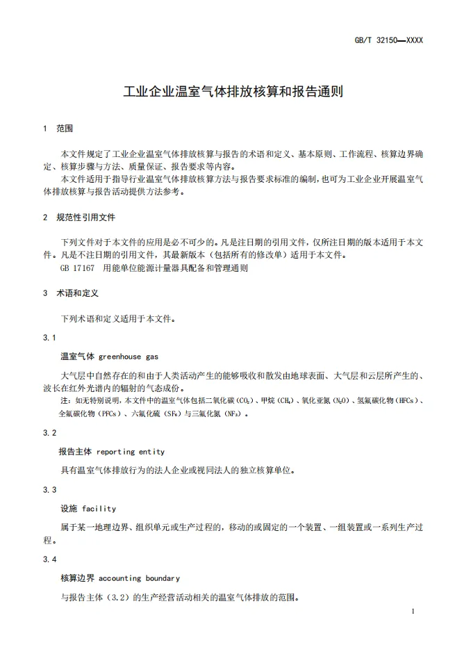 1、GB/T 32150-2025《工业企业温室气体排放核算和报告通则》(代替GB/T 32150-2015)