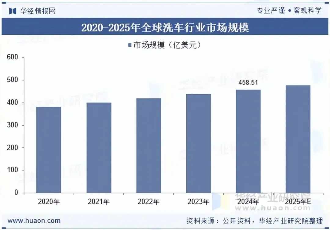 2024年全球洗车行业市场规模已接近460亿美元,展现出稳健增长态势。全球汽车保有量持续攀升,尤其北美等高汽车保有率地区构成核心需求市场;消费者对车辆养护重视度提升,叠加快节奏生活下对专业洗车服务的偏好,推动需求扩容。同时,自动化设备普及、环保洗护技术应用及连锁品牌整合加速,行业效率与服务质量升级,进一步支撑市场规模增长,且未来有望随技术创新与消费升级持续扩大。