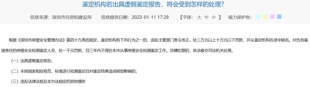 其实对于检测单位而言,出具虚假报告无异于自毁前程。作为权威的头部检测公司,深圳市XX工程检测有限公司本应恪尽职守,成为行业标杆,但却违背职业道德,出具虚假报告谋利,实在不该!如果再犯,当地住建局将依法对其从严从重处理,后续更可能面临吊销资质证书以及高额罚款等行政处罚,相关责任人还可能被限制从业。更严重的是,在一次又一次地违规操作下,企业信誉将彻底崩塌,业主单位在进行招投标时,也会将这类单位列入“黑名单”。更可怕的是,若造假行为造成重大安全事故,相关责任人还将被追究刑事责任。