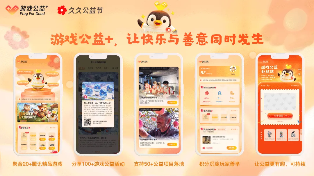 腾讯“游戏公益+”平台于2024年“久久公益节”后正式成立,首次为数亿玩家提供游戏专属公益阵地,聚合了包括《王者荣耀》《和平精英》等在内的超20款腾讯游戏,用积分等形式沉淀了玩家们的善举,用游戏拓展了公益的新玩法,让游戏公益更有趣、更便捷、更持续。