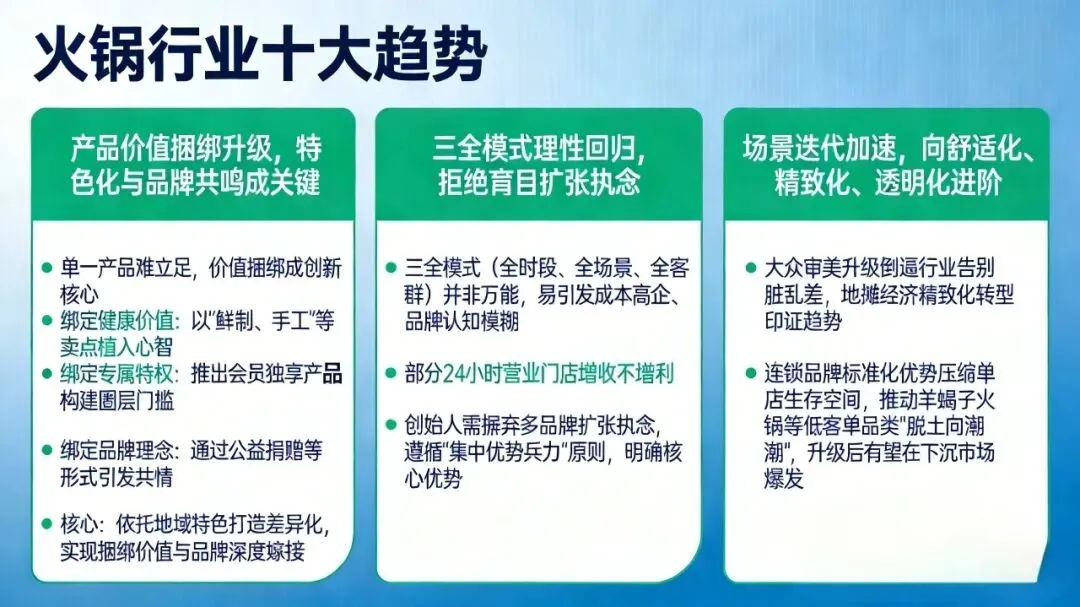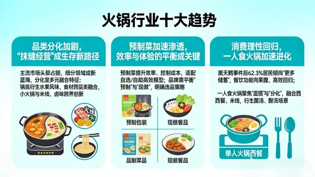 2026年启幕,火锅行业竞争格局持续重塑,精准预判趋势成为企业破局关键。消费需求迭代背景下,行业将呈现十大核心趋势,指引从业者打好“有准备之仗”。