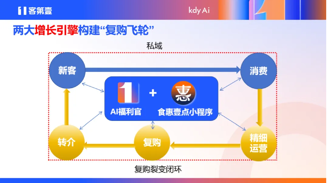 十大趋势相互关联,产品、场景、模式、品类需适配消费心态变化,企业需契合供需逻辑,聚焦圈层营销构建屏障。所有运营最终指向核心目标:持续复购。客第壹的「AI福利官」与「食惠壹点」小程序,是复购增长的核心引擎。