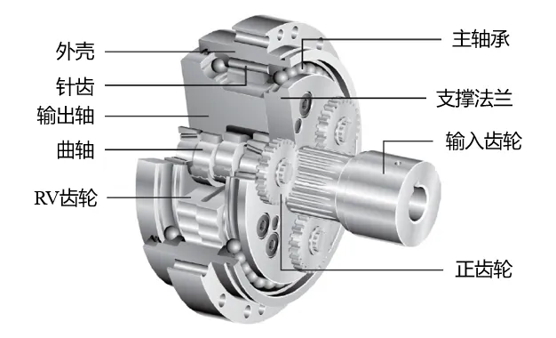 RV减速器由一个行星齿轮减速器的前级和一个摆线针轮减速器的后级组成,RV减速器具有结构紧凑,传动比大,以及在一定条件下具有自锁功能的传动机械,而且振动小,噪音低,能耗低,是最常用的减速器之一。