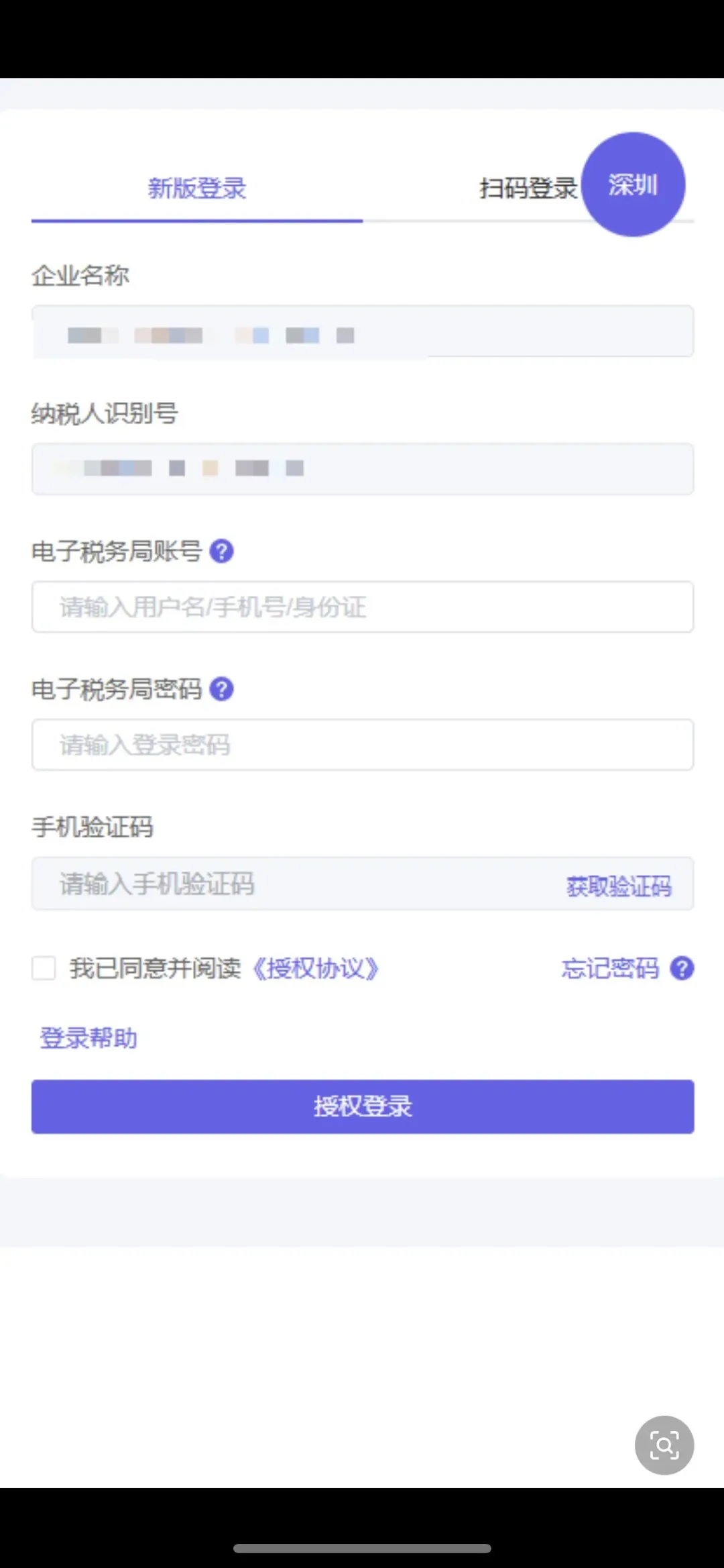 3、按照步骤,填写企业信息授权,如申请人忘记电子税务局密码,可点击“忘记密码”进行修改,填写完成后点击“授权登录”