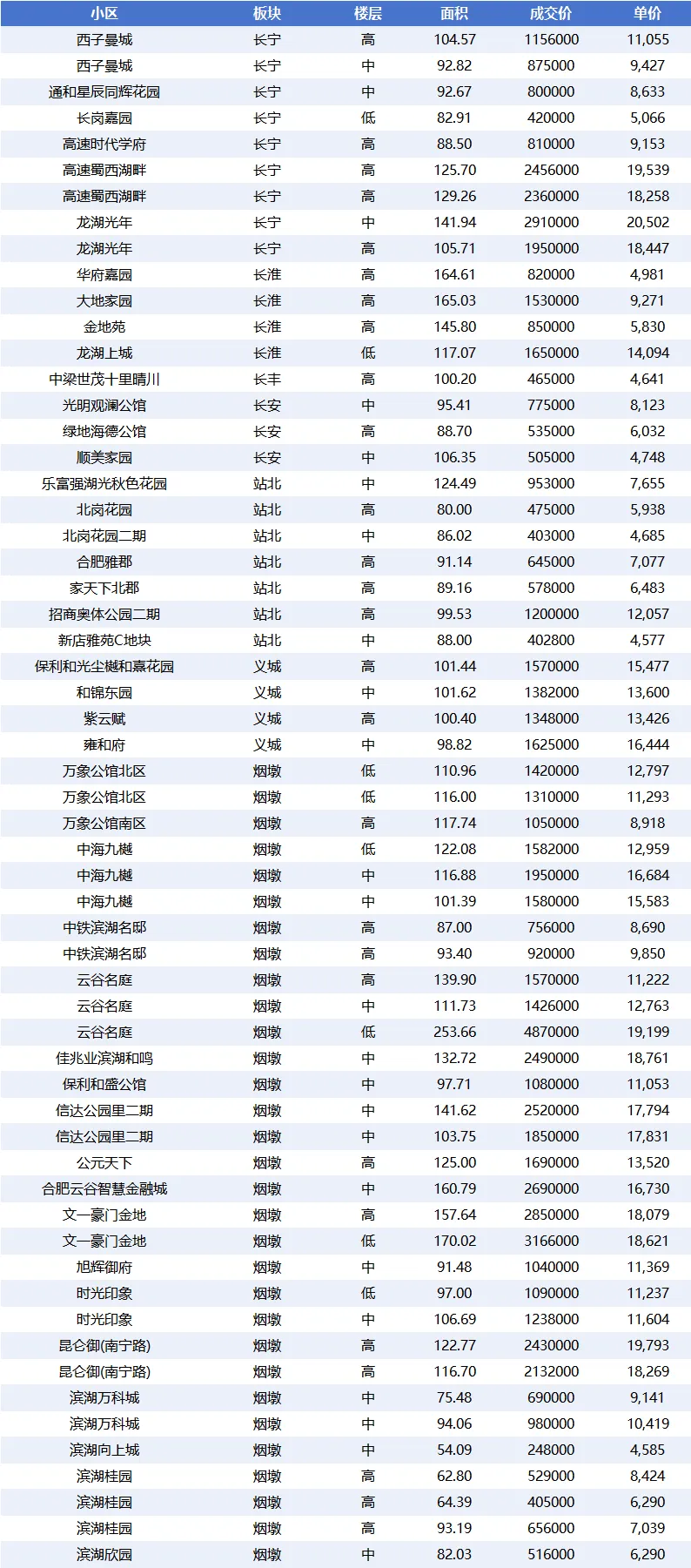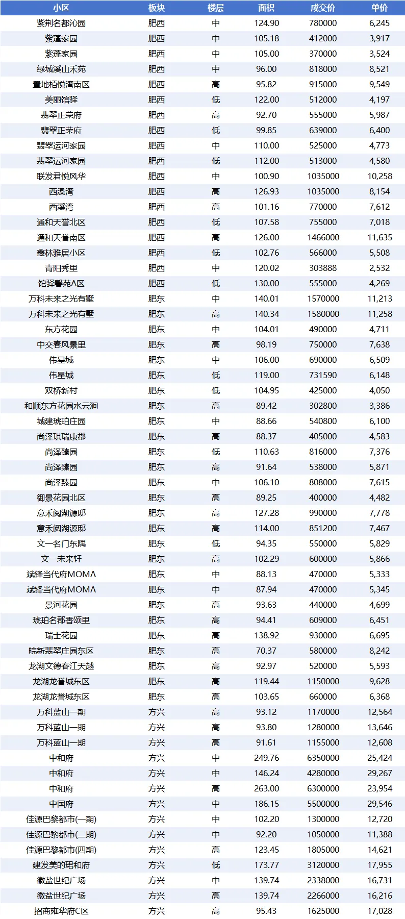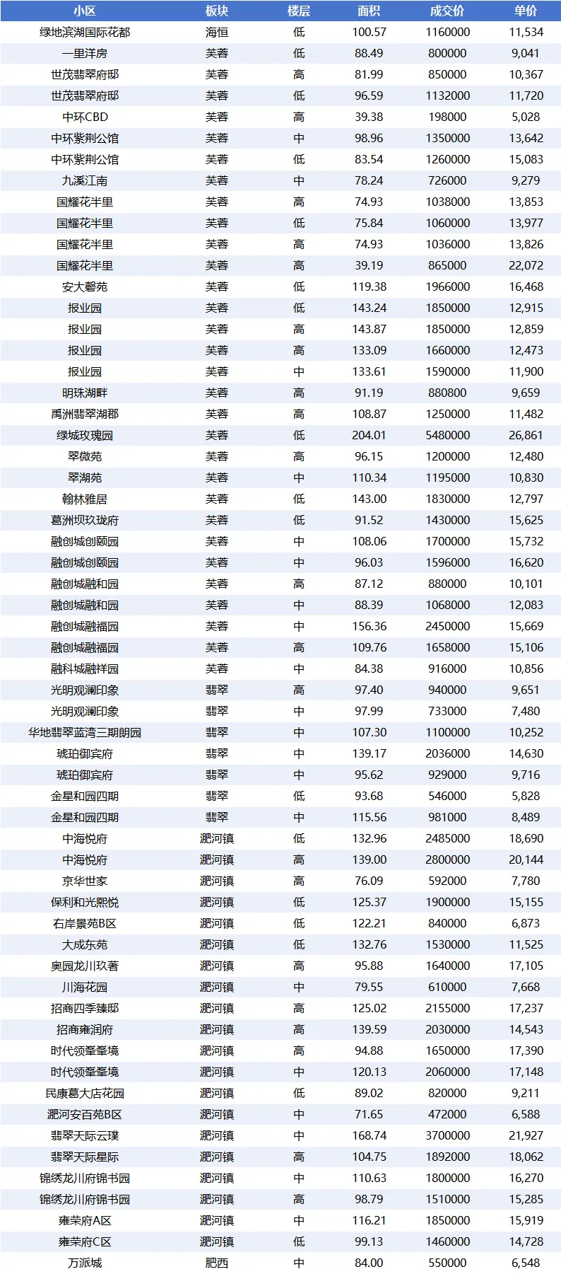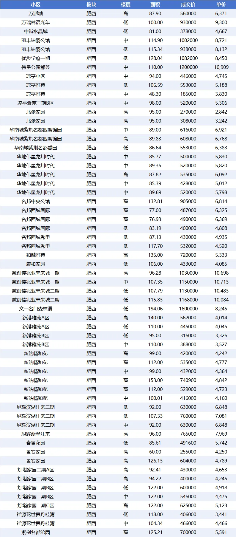 - 肥西:78 套,平均单价仅 5,992.64 元 /㎡,是成交量最高且价格最低的商圈,具有明显的价格优势
