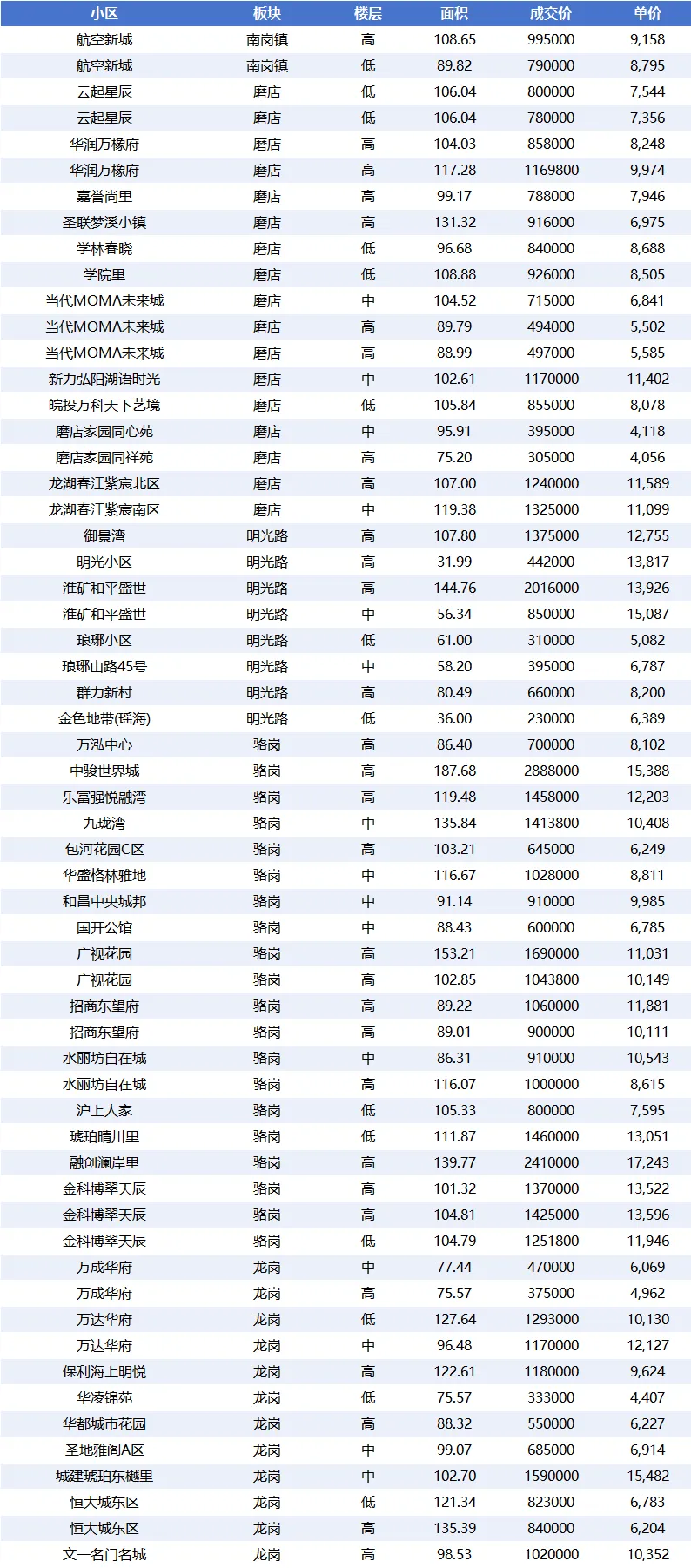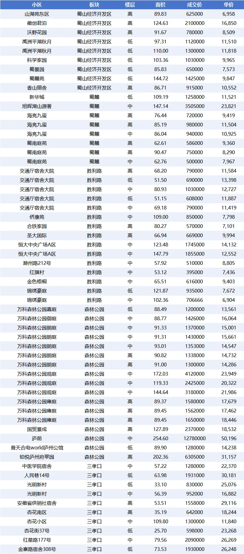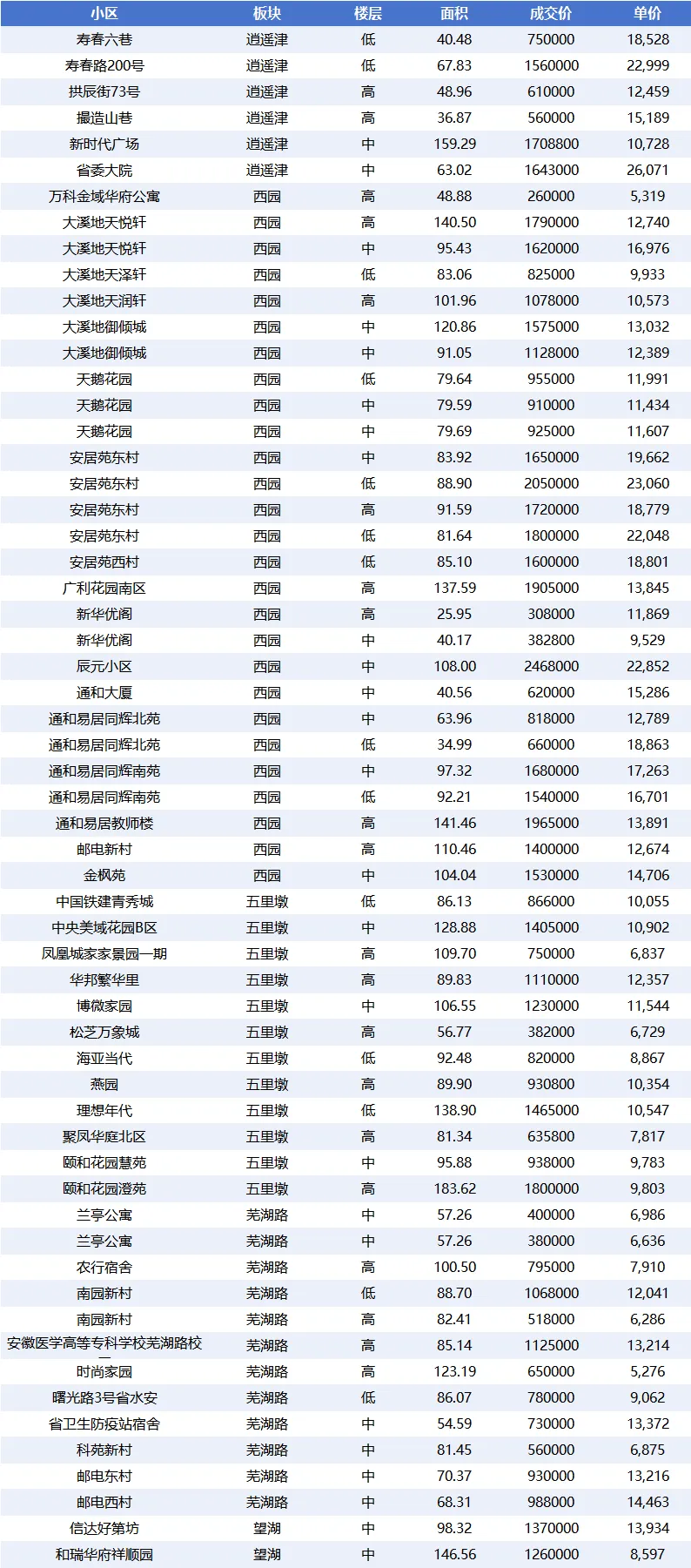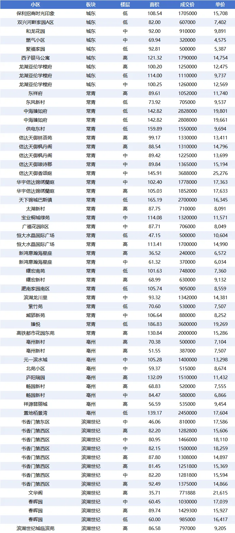 - 滨湖世纪:50 套,平均单价 12,627.70 元 /㎡,属于中高端价格区间