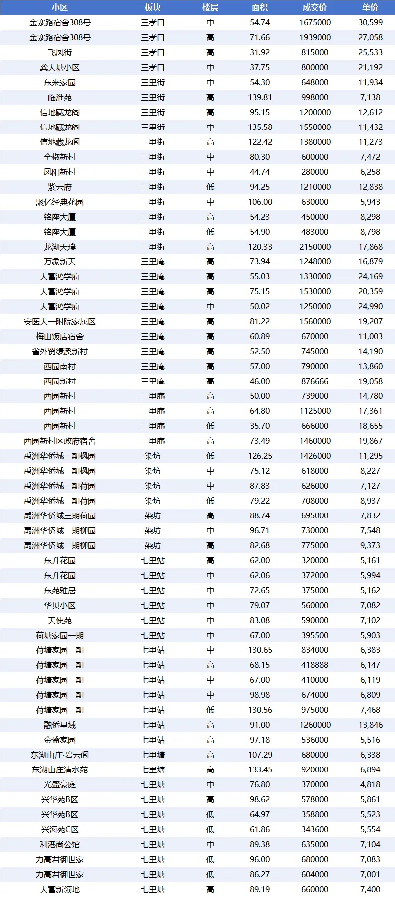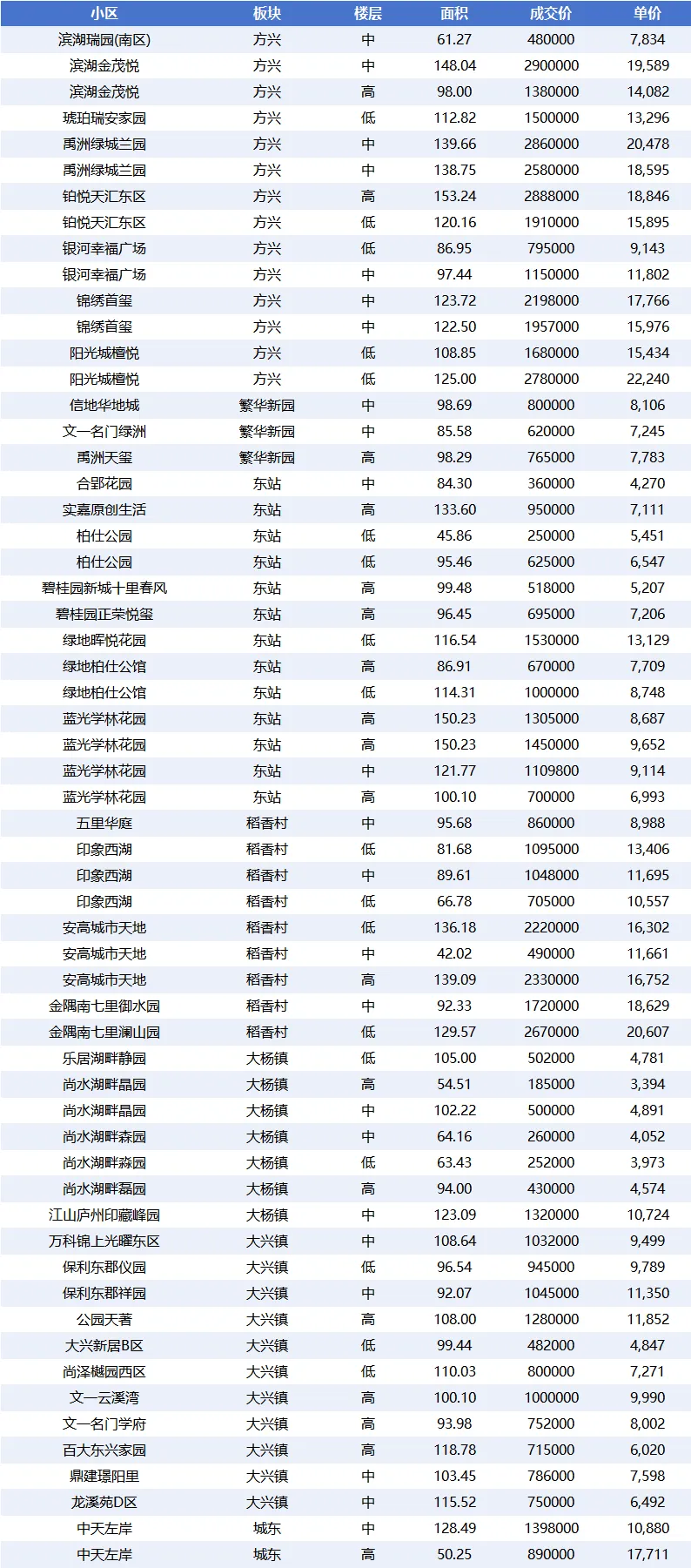 - 方兴商圈:虽然仅成交 28 套,但平均成交金额达 237.85 万元 / 套,平均单价 16,951.63 元 /㎡,是高端市场的核心区域