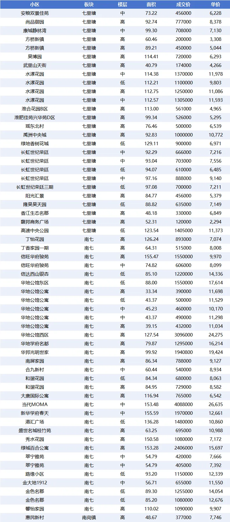 - 七里塘:36 套,平均单价 7,052.15 元 /㎡,价格亲民