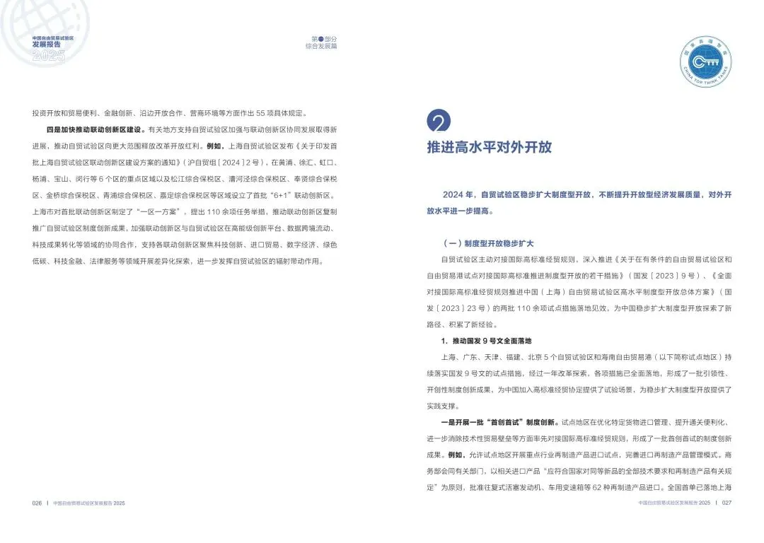 。自贸区主动对接 CPTPP 等规则,国发 9 号文、23 号文 110 余项试点措施落地,如上海自贸区试点暂时进境修理货物保税(复运出境免税)、海关预裁定展期;2024 年发布自贸区版跨境服务贸易负面清单(68 条),较全国版少 3 条,在自然人职业资格(取消 6 类考试限制)、金融(允许境外个人开证券账户)、文化(中外合作剧集中方人员比例降至 25%)等领域进一步开放,推动规则、规制、管理、标准与国际衔接。 - 开放型经济贡献突出,外贸外资增速领先全国