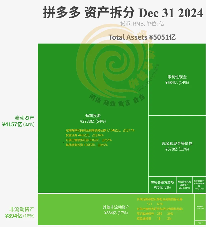 从下面拼多多2024年资产表桑吉图拆分来看,拼多多是极其夸张的轻资产运营公司。