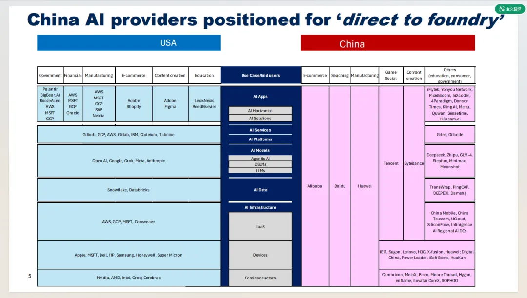 报告从 AI 应用、设备、半导体等八大核心环节,全面对比中美两国的生态布局。