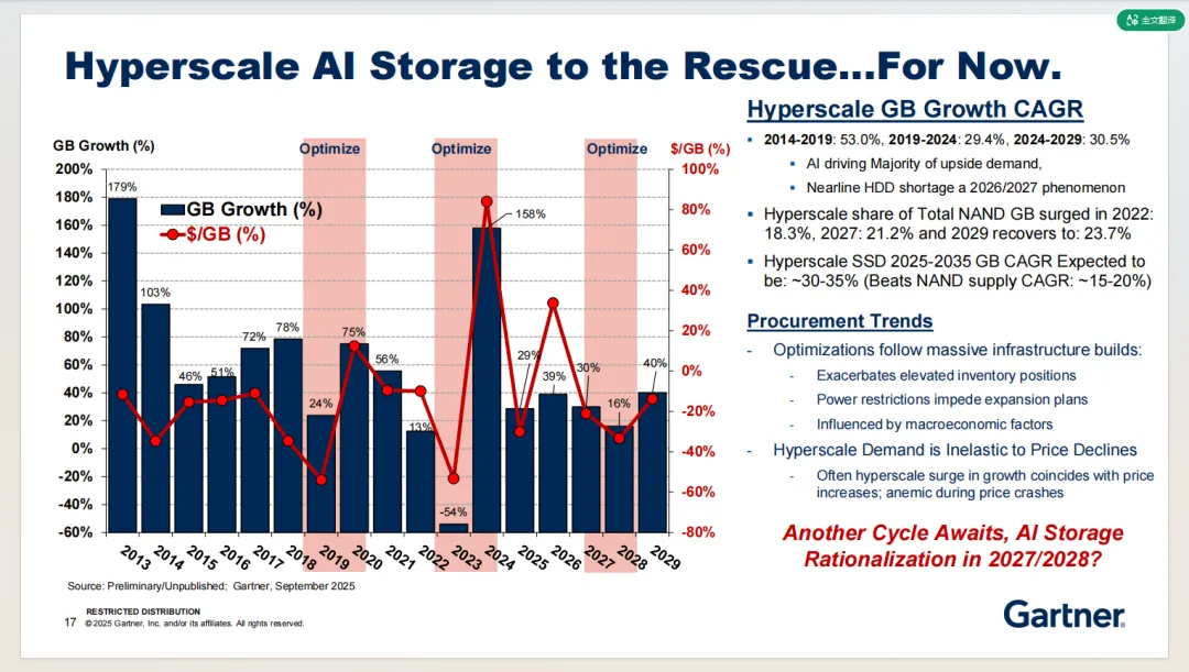 2025 年 Q4平均价格预计上涨 9.6%,2026 年更是将扩大至 23.9%,利润也会显著回升。长期来看,NAND将持续替代 HDD,QLC、PLC技术迭代驱动成本下降。