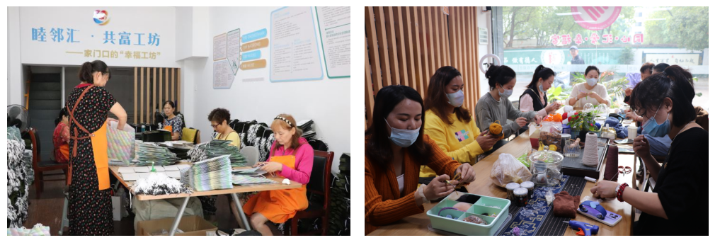 西溪镇聚焦共富征程中“最容易掉队”的“弱势群体”,引入来料加工业务,面向残疾人群创新打造了环球工疗•共富工坊。工坊还为残障人士配置了独立的工疗车间、培训室,康复室、保健室、男女休息室、阅览室、活动室、心理咨询室等,为符合条件的残疾人提供日间生活照料、技能培训、康复服务、文体服务和辅助性就业服务。“共富工坊”自成立以来,除了在工疗车间集中工作的67名残障员工外,还吸纳了石江村等村低收入农户和周边群众就业300余人,人均月增收2000余元。